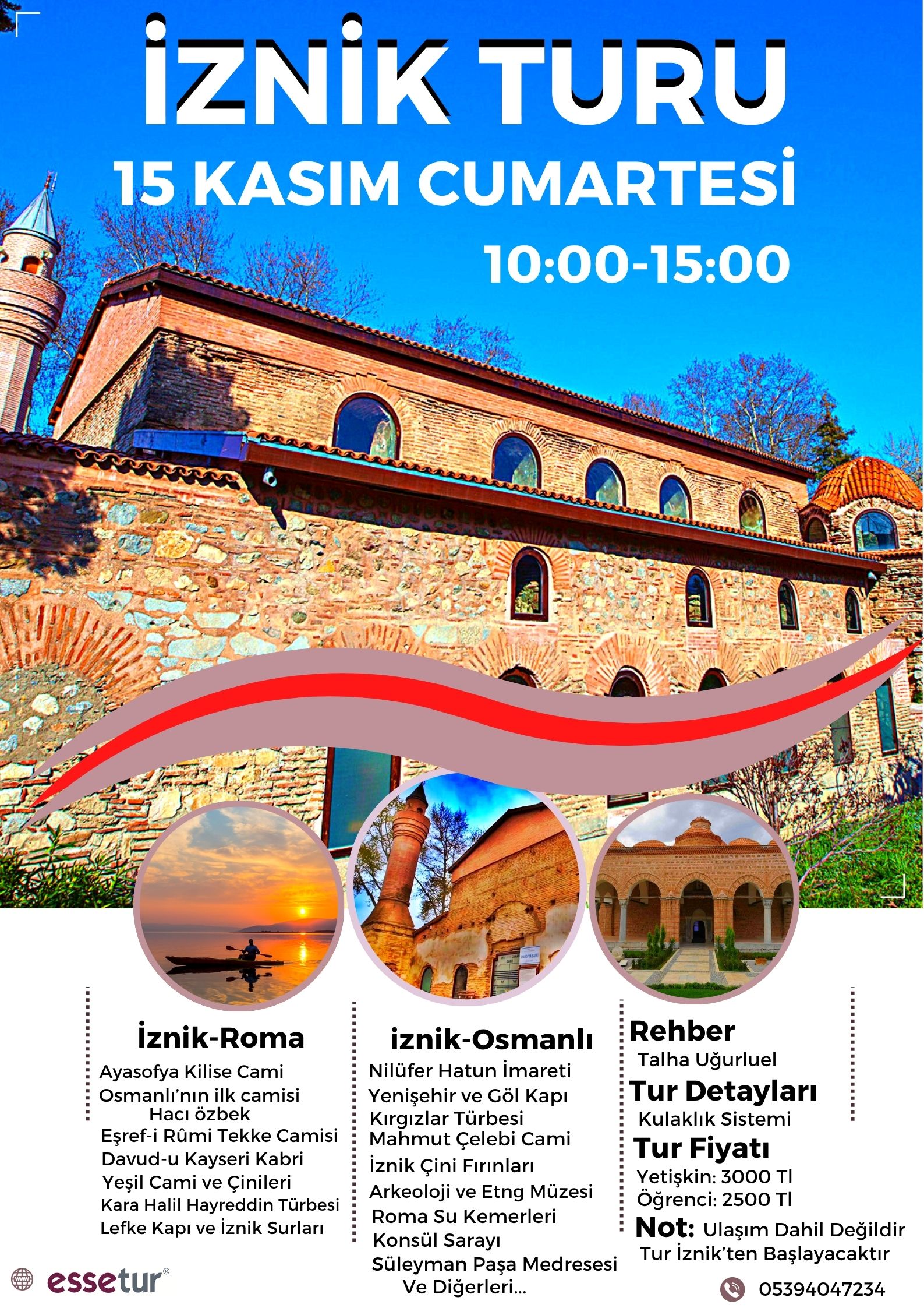 Turumuz İstanbul'dan hareketli değildir. Tarihi İznik’in gezileceği turumuza Ayasofya Kilise Cami’nden Başlanacaktır. Saat 10:00 da Başlayacak Programımız İçin 9:45 de Ayasofya Önünde Olmanızı Rica Ederiz.